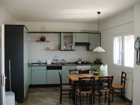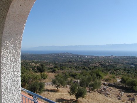Koroni. Theo's ouders wonen midden in het dorp. |